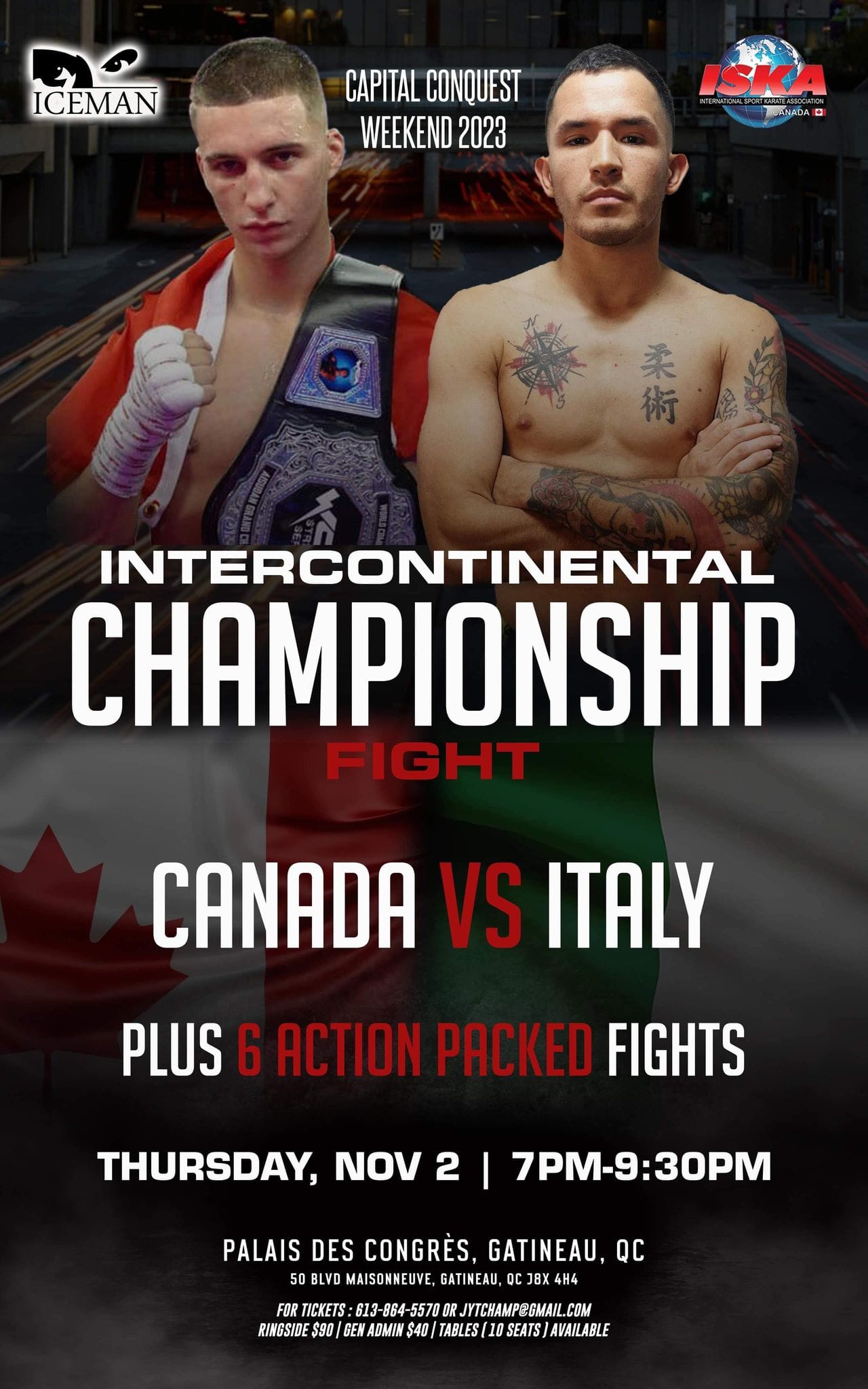 Come see the strong Italian 🇮🇹 team vs. our strong Canadian 🇨🇦 team for some Intercontinental fights this November 2nd starting at 7pm
